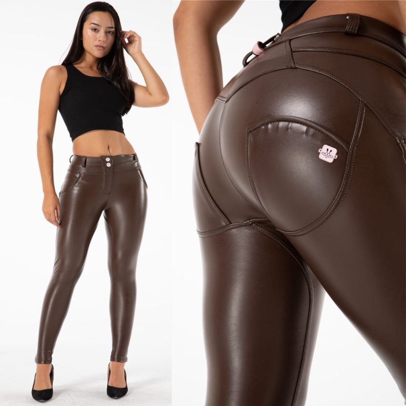 Legging en similicuir pour femme, pantalon Salsa Push Up, marron