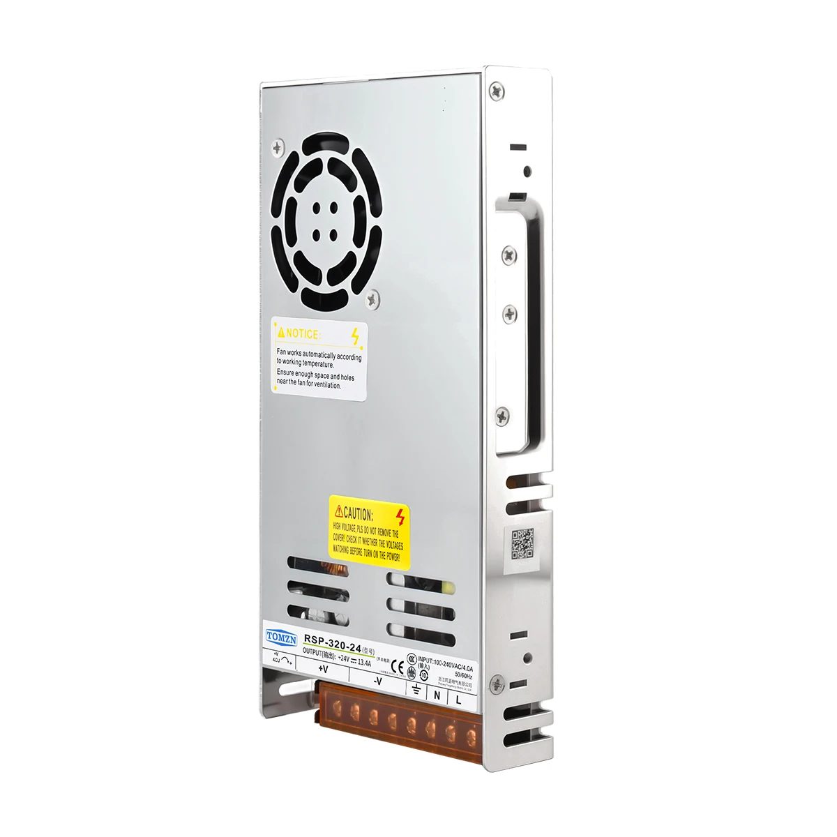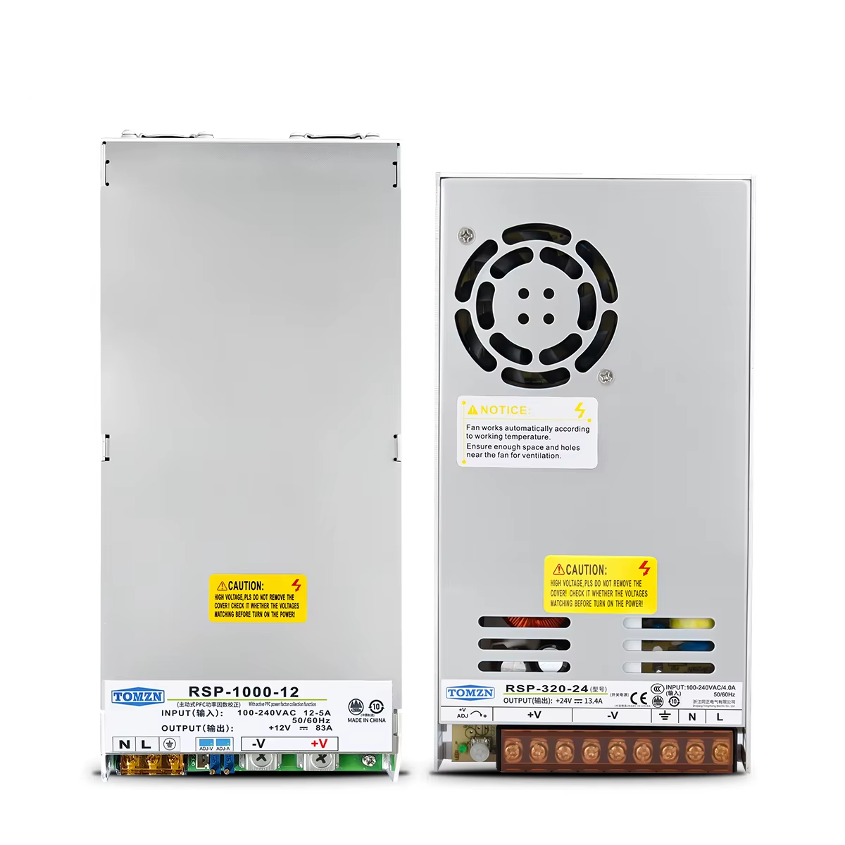 Les alimentations de la série TOMZN RSP sont conçues pour offrir une puissance stable, un rendement élevé et une sécurité optimale dans les applications industrielles, électroniques et domotiques. Elles convertissent efficacement le courant alternatif (AC 100 – 240 V) en courant continu régulé (DC 12 V, 24 V ou 48 V) avec un facteur de puissance corrigé (PFC actif).