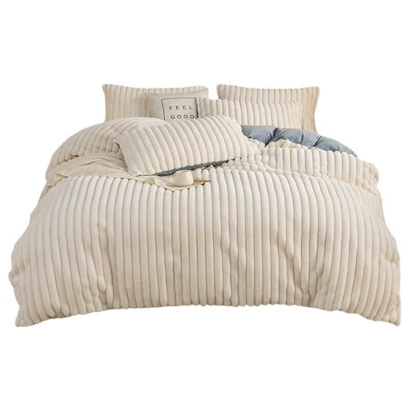 Ensemble 5 pièces, housse de couette en peluche, drap plat, oreiller en forme de cœur et taies d'oreiller