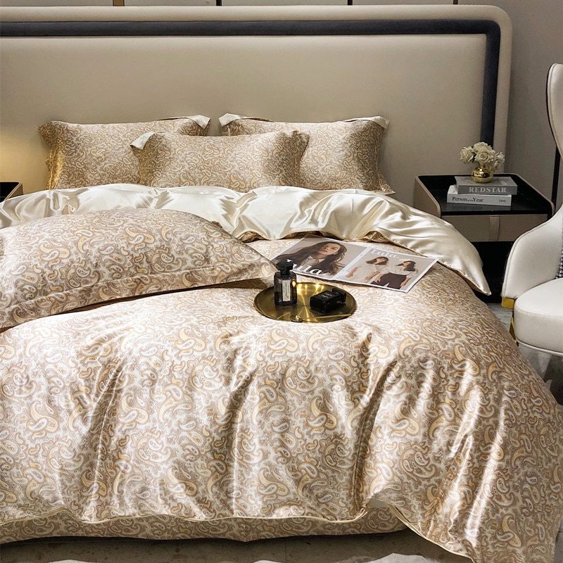Ensemble 4 pièces 100% satin de soie, housse de couette, drap-housse et taies d’oreiller