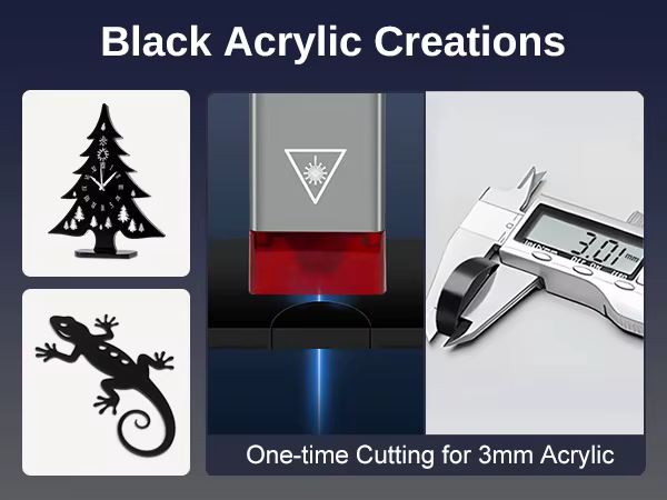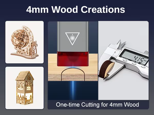 Dotée d’une zone de gravure de 300 × 300 mm, la K1 Mini permet de travailler sur une grande variété de matériaux : bois, cuir, bambou, acrylique, carton, acier inoxydable non spéculaire, céramique, aluminium anodisé, etc. Elle est idéale pour la personnalisation d’objets, la fabrication artisanale, les maquettes, ou la découpe fine.