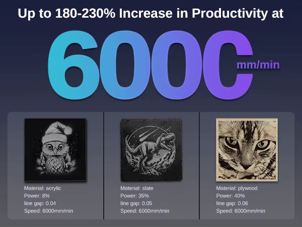 Vitesse jusqu’à 6000 mm/min, augmentant la productivité de 180 % à 230 %.
