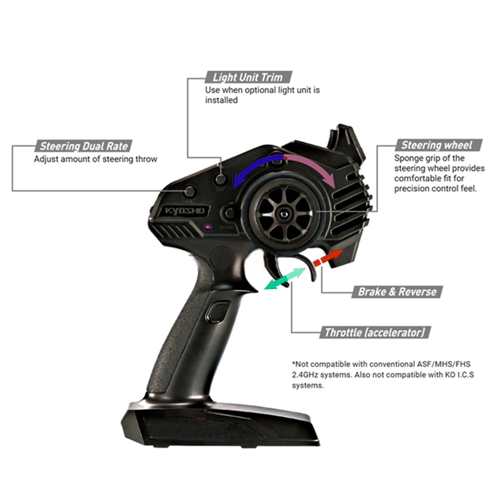 Le système radio 2.4GHz avec capacité antibrouillage nous permet de courir en même temps sur la même piste. La distance de contrôle est jusqu’à 30 mètres.