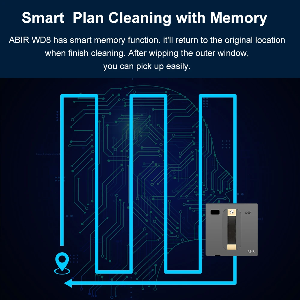 Nettoyeur de vitres robot ABIR WD8, double pulvérisation ultrasonique, 3000 Pa, SLAM 4.0, UPS 40 min, télécommande + App