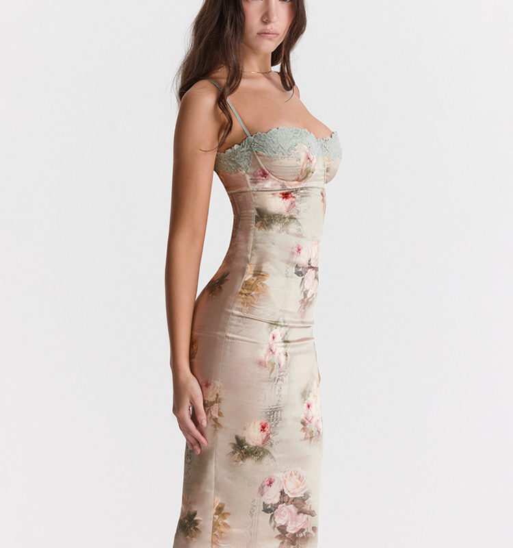 Soyez le premier à laisser votre avis sur “Robe mi-longue en soie et satin, imprimée, fente avant, dos ouvert”